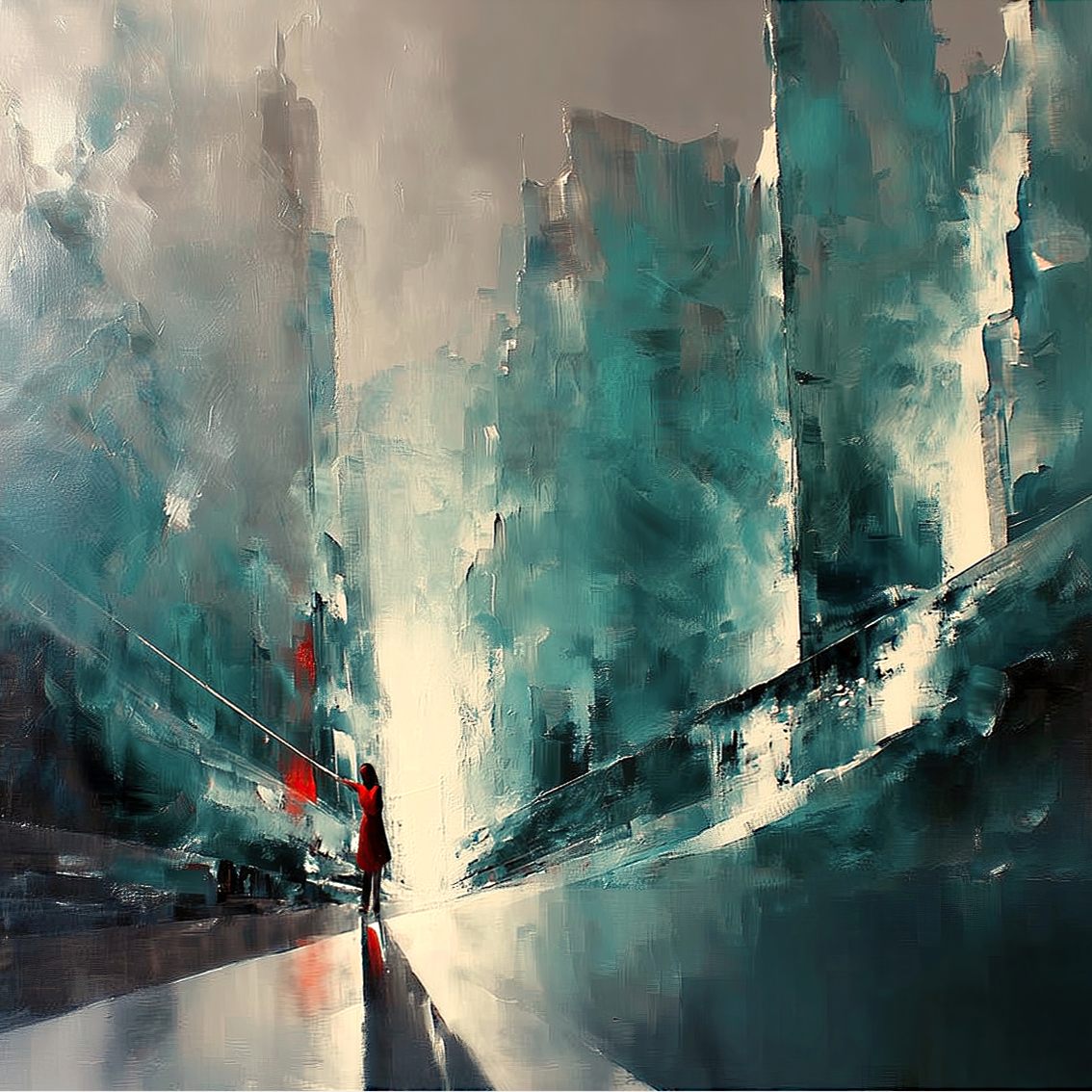 Teal and indigo tones create an atmosphere of melancholy, beauty and lingering hope.