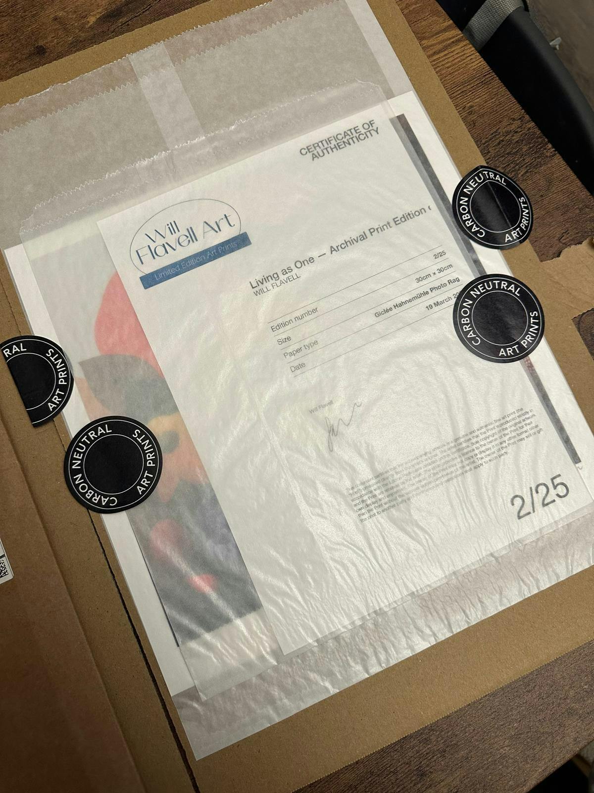 Unframed prints: Protected with recyclable tissue paper, shipped flat or in a tube according to size